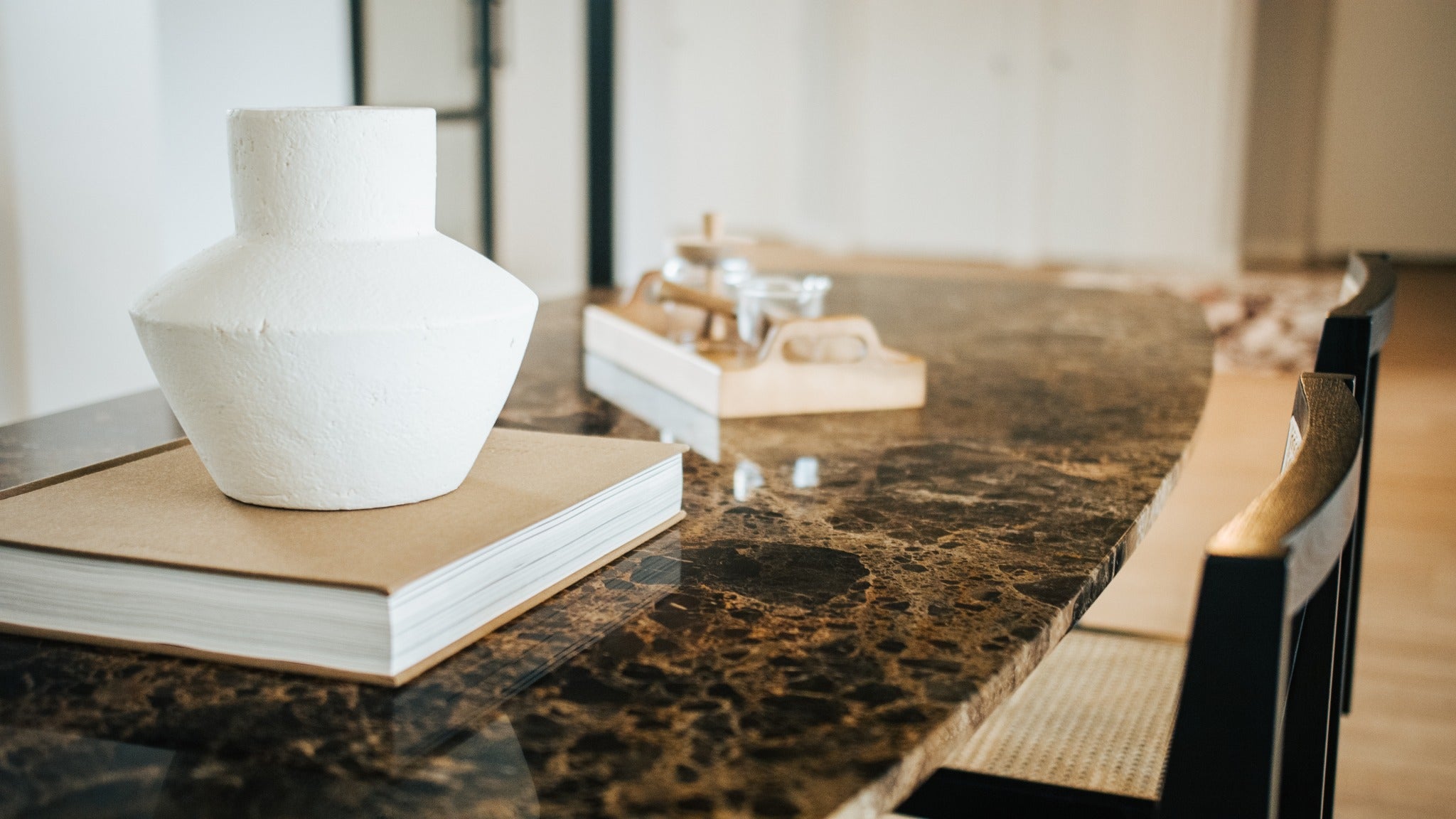 A straightforward table not for you? This marble dining table with a Celio shaped top may well be just what you’re looking for! Its unique shape adds a special dimension to your interior, making it a real eyecatcher in your home. Make a statement with this Celio dining table in Dark Emperador brown. Astonish others with your good taste! The black steel matches the black marble top perfectly, giving it a modern, sleek look. The Dark Emperador brown dining table has a solid 2cm-thick marble top. The edges of the top protrude over the frame on all sides, creating the impression that the top is floating. The finish of the top is refined. The traditional technique used to polish the top accentuates the natural shine of the marble.