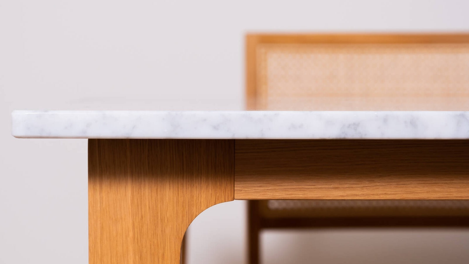 Our white marble dining table is now available with a wooden frame! This new addition creates atmosphere and character. The solid oak wood used for the marble top is firm, making the table very sturdy. The light colour of the wood matches the white top perfectly, giving it a Scandinavian look. The table can be disassembled and will be assembled in your home.