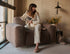 Design & comfort come together in a unique way with our brand new NOLLIE chair. Not only is it a beautiful piece of furniture that shines in any living room, but it also sits like a cloud. Dream away on this stylish designer chair, which fits perfectly with our wide collection of coffee tables. The luxurious filling makes the NOLLIE chair wonderfully fluffy and De Ploeg’s high quality fabric feels silky soft to the touch. The armchair stands on subtle feet of 5 cm high. These are placed so that they are not visible, making the chair seem to float above the ground.
